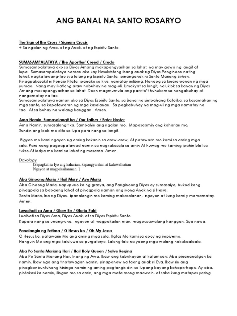 44 9 44 found this document useful 9 votes 10K views. Dasal ng papuri adorasyon o pagsamba uri ng panalangin ng pamimintuho nagpapadama ng pag-ibig at pagpupugay sa Diyos. Sumasampalataya Sumasampalataya ako sa Diyos Amang Makapangyarihan sa lahat na Maylikha ng langit at lupa.