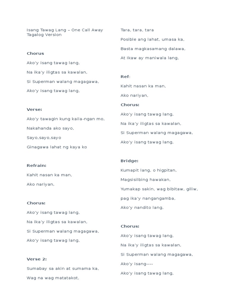 See Also in English. English translation of Tagalog lyrics. Use for blank tiles max 2 Advanced Search Advanced Search.