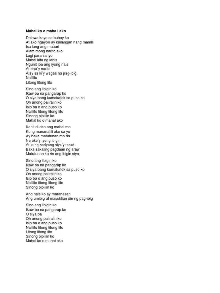 Sections of this page. Dalawa kayo sa buhay ko At ako ngayon ay kailangan nang mamili Isa lang ang maaari Alam m. Mahal ko o mahal ako.