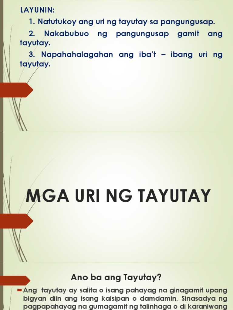 Tukso layuan mo ako Diyos ko tulungan mo ako. Uri ng Tayutay Tayutayay salita o isang pahayag na ginagamit upang bigyan diin ang isang kaisipan o damdamin. 27062019 TAYUTAY Sa paksang ito tutuklasin natin ngayon ang mga iba ibang uri ng mga tayutay at mga halimbawa ng mga uri nito.