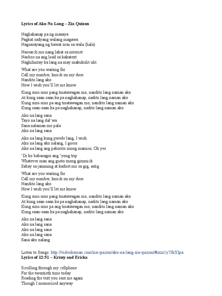 Ako Na Lang Zia Quizon Lyrics Docx